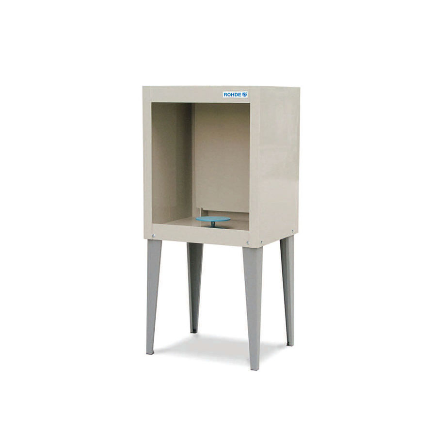 La cabina da spruzzo ROHDE SK 66 previene la fuoriuscita di particelle di smaltatura a vetro e colore, assicurando in tutto il laboratorio un ambiente di lavoro sicuro e privo di polveri.