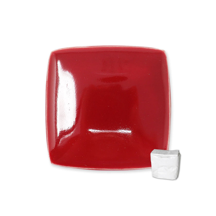 Smalto brillante rosso intenso semitrasparente, in doppio strato diventa di un rosso più carico.