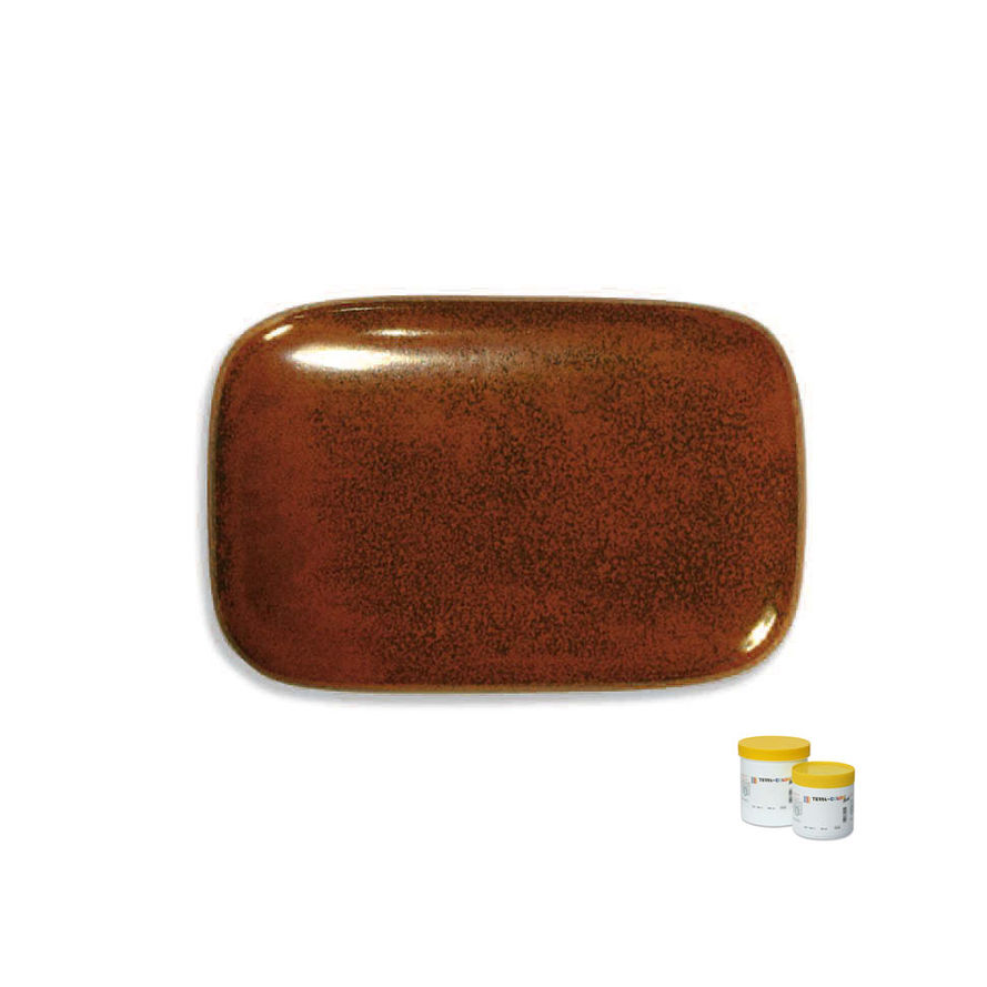 Smalto lucido ad effetto color ruggine con sfumature e puntinature nere.